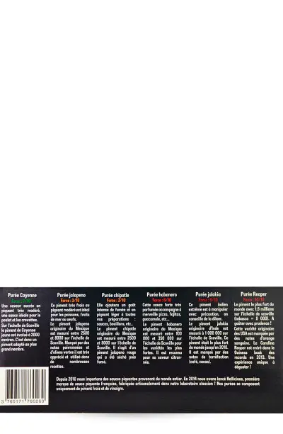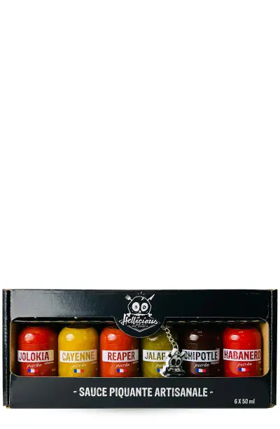 Le coffret d’Hellicious a été imaginé et fabriqué par Sauce Piquante de la recette au packaging jusqu’à la découpe du piment et sa cuisson ! On vous propose de découvrir les saveurs et forces de ces 6 piments que l’on adore :